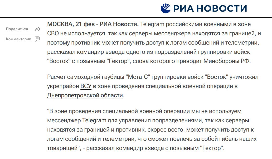 Как тогда относиться к тому, что многие источники из тех, кто находится на ЛБС говорят обратное? То есть то, что на безе телеги выстроена коммуникация многих подразделений?