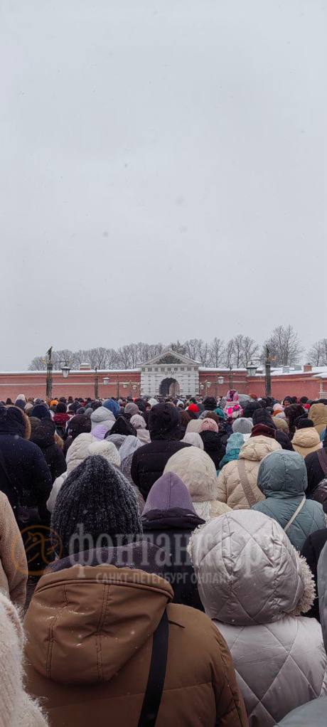Вот такие толпы сейчас у входа в Петропавловскую крепость, где проходит «Сударыня Масленица». Пешеходное движение, судя по кадрам, там довольно хаотичное. Погода не шепчет. Короче говоря, досуг не для интровертов.