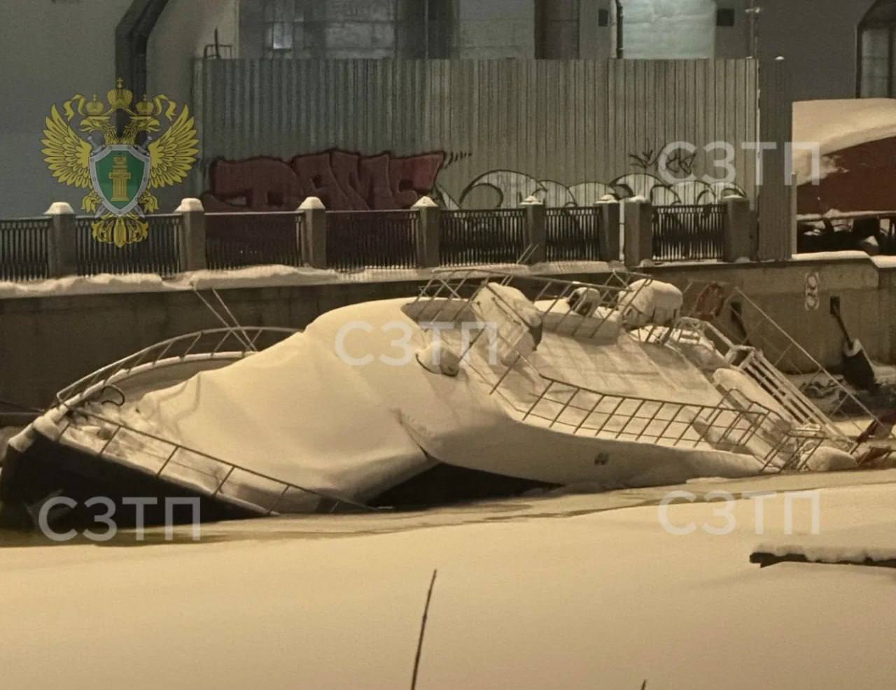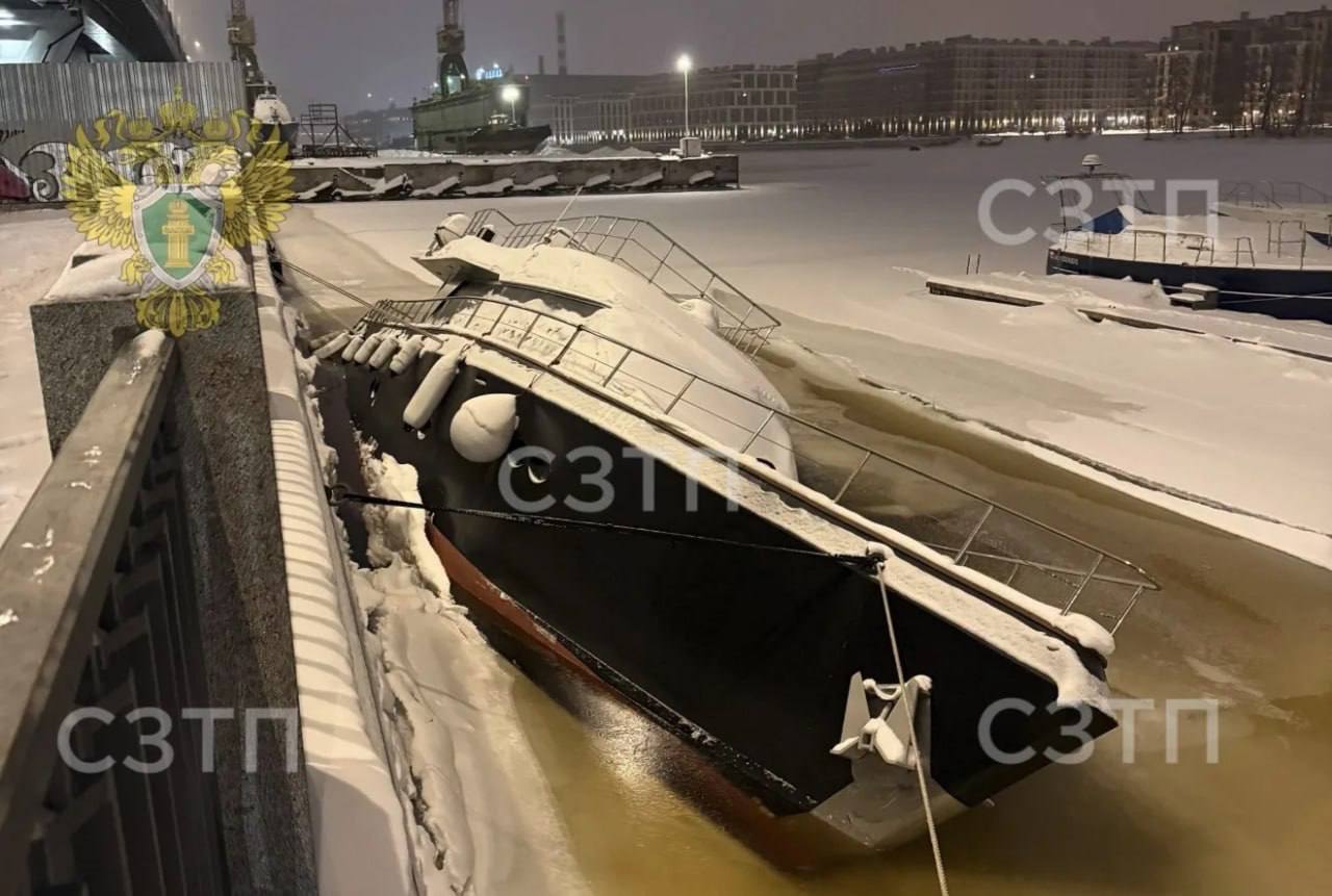 Судно Zeus накренилось в акватории Малой Невы. Предварительно, лед сделал пробоину в корпусе.