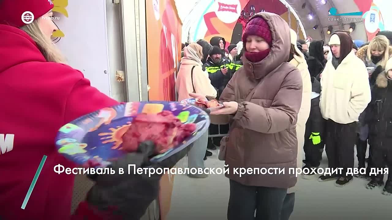 Семисоткилограммовый розовый блинный пирог испекли сегодня в Петропавловской крепости.