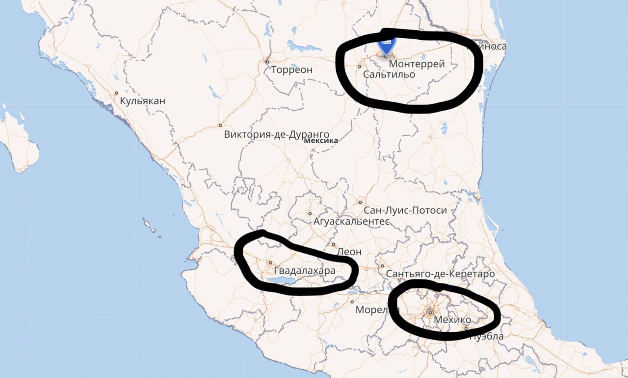 А теперь внимание. В Мексике - это города Гвадалахара, Монтеррей и Мехико. Гвадалахара - это ровно там, где сейчас наркокартели воюют с американцами и федеральными властями Мексики.