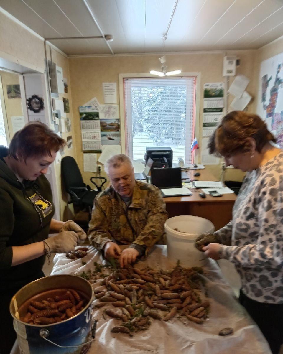 В Подпорожском лесничестве Ленинградской области полным ходом идет подготовка к весеннему лесокультурному сезону 2026 года. Сотрудники филиала ЛОГКУ «Ленобллес» приступили к сбору лесосеменного сырья - шишек сосны и ели.