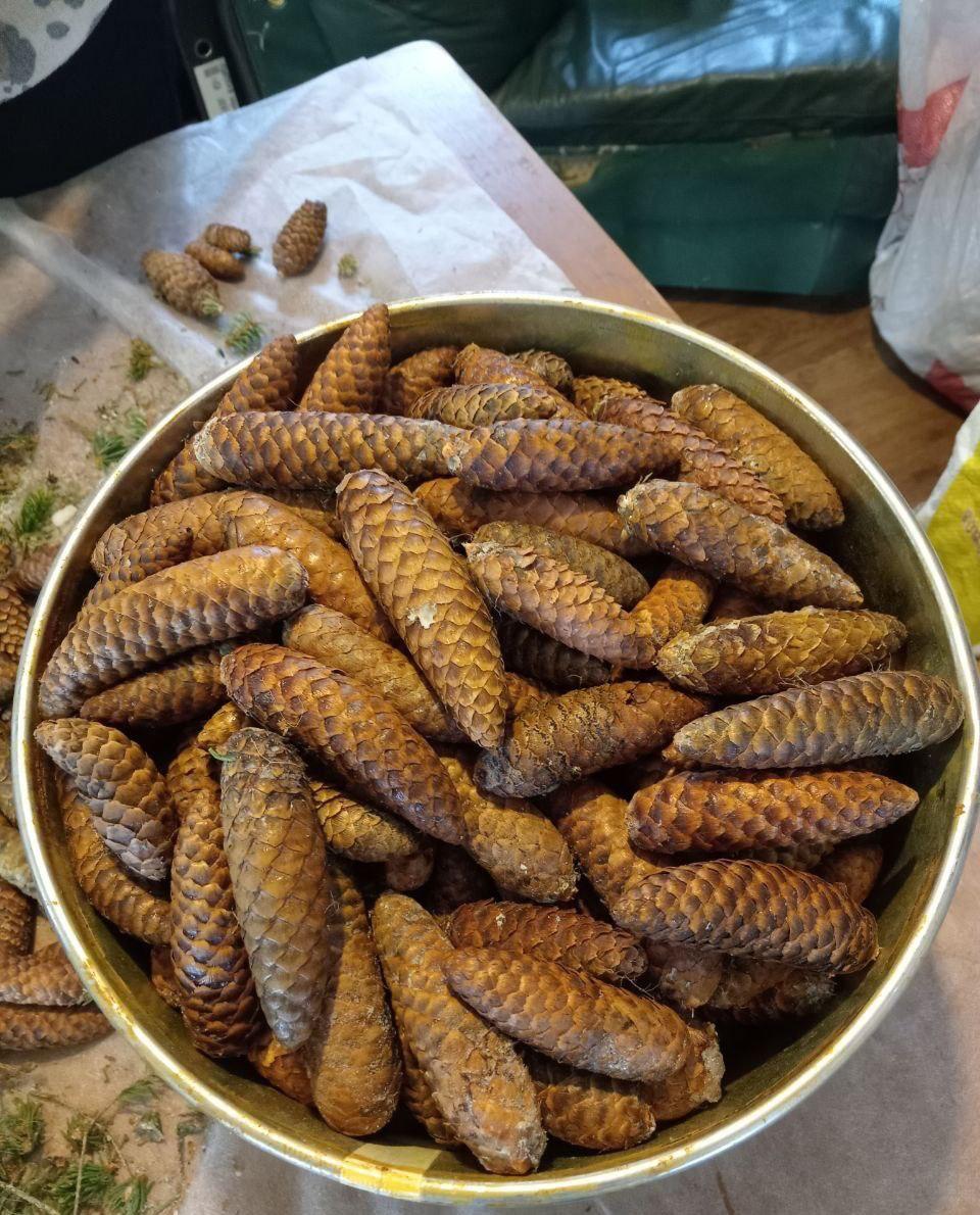 Этот процесс является очень трудоемким и требует специальных навыков. Работники лесничества тщательно отбирают подходящие деревья и приступают к сбору шишек - вручную или при помощи специальных инструментов.