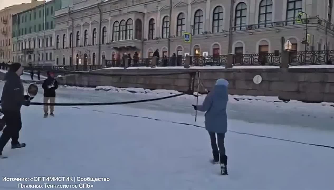 В Питере — играть в снежный теннис. Местные энтузиасты развернули на замерзшей Фонтанке корт, устроив отмороженный турнир.
