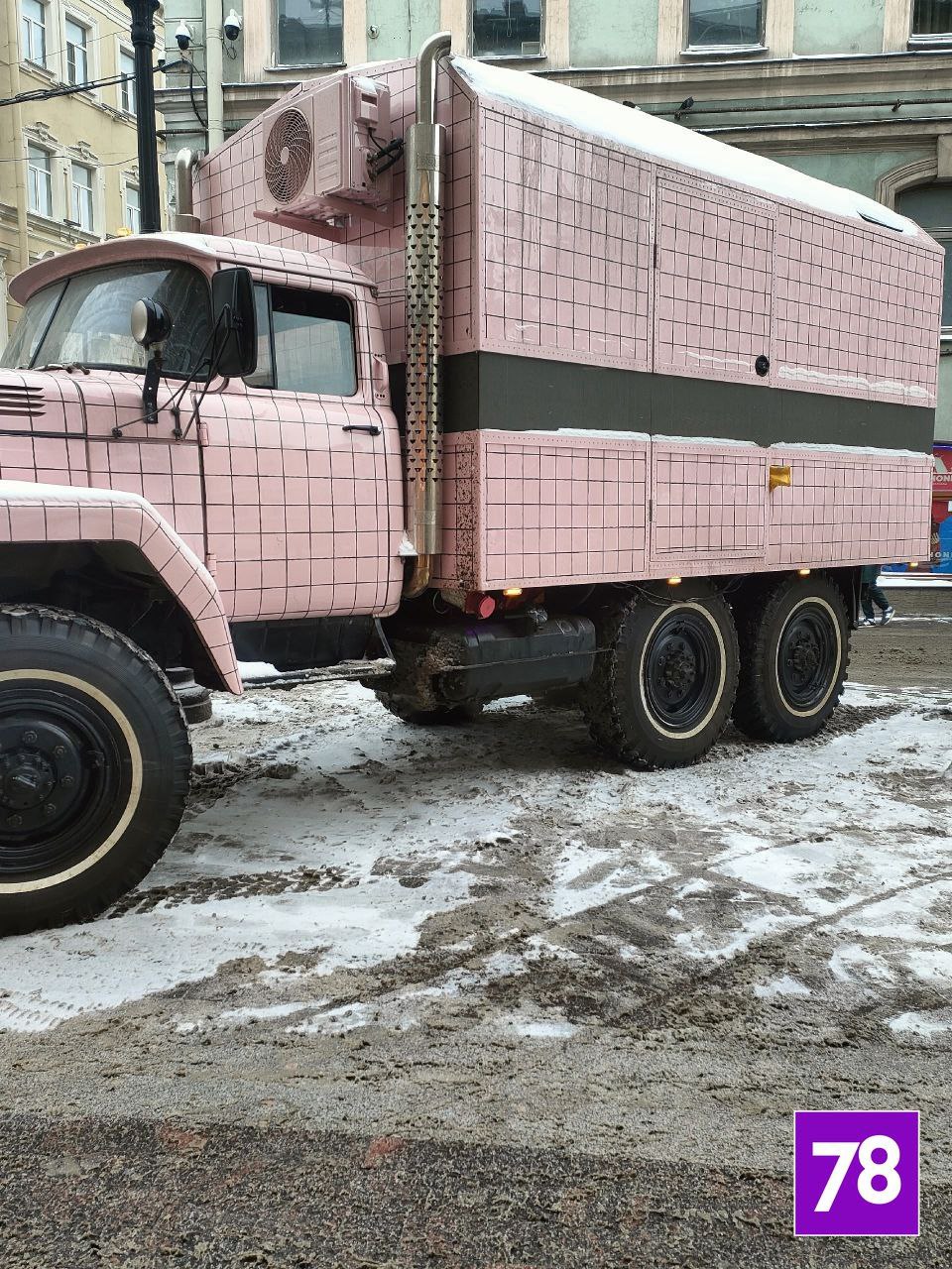 Розовый гигант уже более года «украшает» центр Петербурга. Раньше странная фура тихо ржавела на стихийной парковке в стороне, но недавно ситуация вышла из-под контроля.