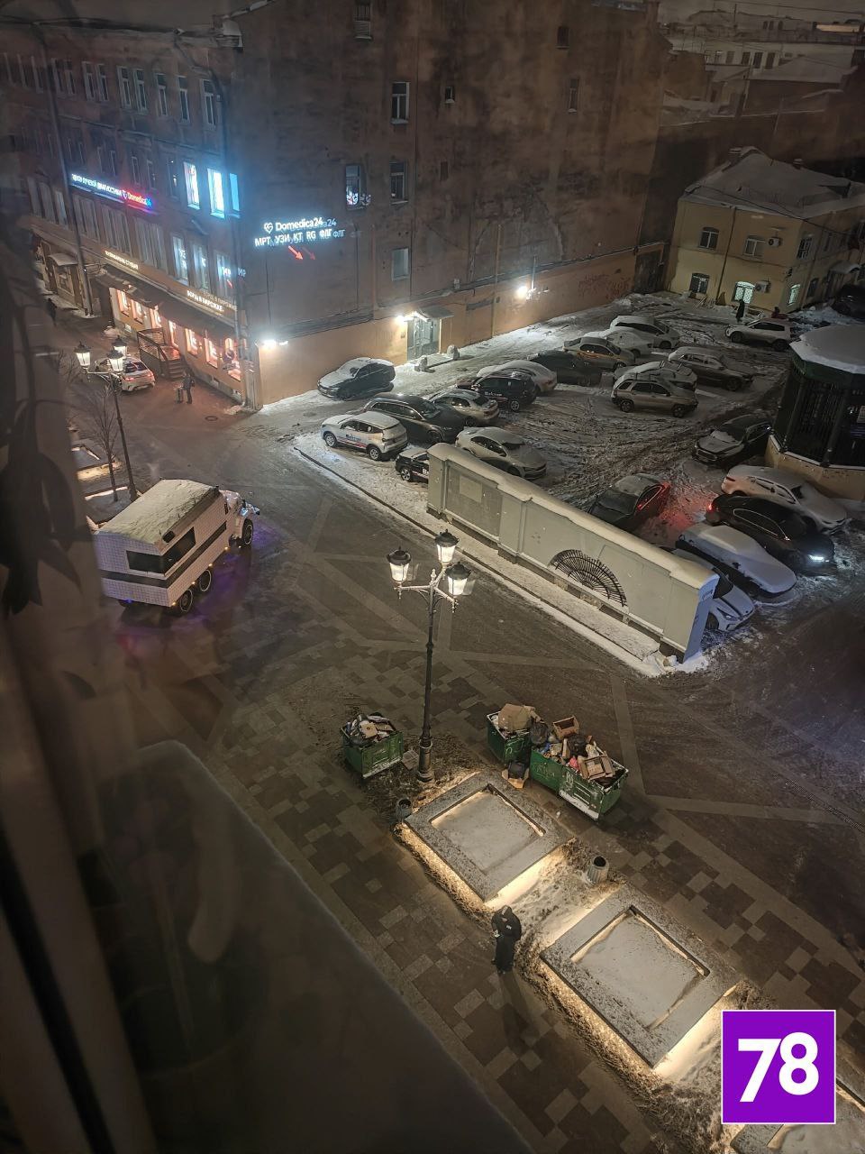 И всё это в центре города, где въезд грузового транспорта вообще-то под запретом.