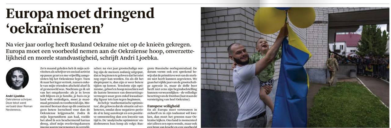 «Европа должна срочно «украинизироваться»». Шикарный заголовок, да? Автором этой статьи в бельгийской газете De Standaard является украинский прохиндей Андрей Любка, представляющийся «поэтом».