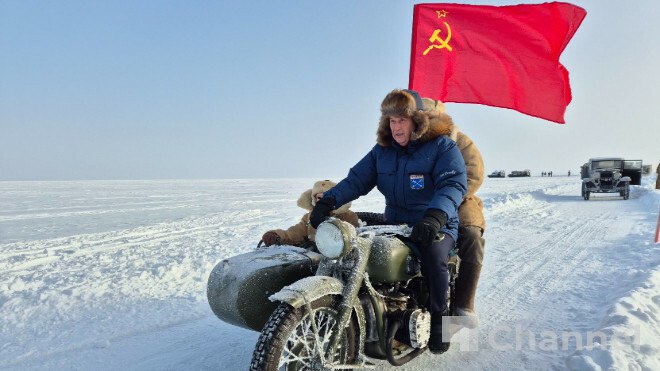 Александр Дрозденко поучаствовал в исторической реконструкции движения по ледовому участку Дороги жизни через Ладожское озеро