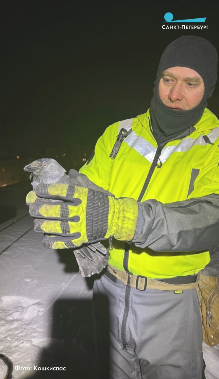 В вентиляционной шахте пятиэтажки обнаружились две галки, которые явно планировали переночевать с комфортом, но чтото пошло не так.