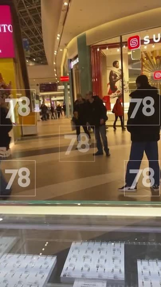 На эксклюзивных кадрах из торгового центра — начало драки. Продолжение потасовки смотрите в MAX.