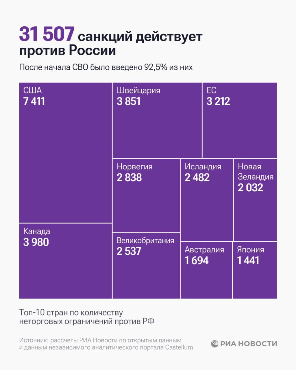 У нас очередной мировой рекорд. 31 507 санкций введено Западом против России после 2014 года. То есть многим из этих санкций уже более 10 лет.