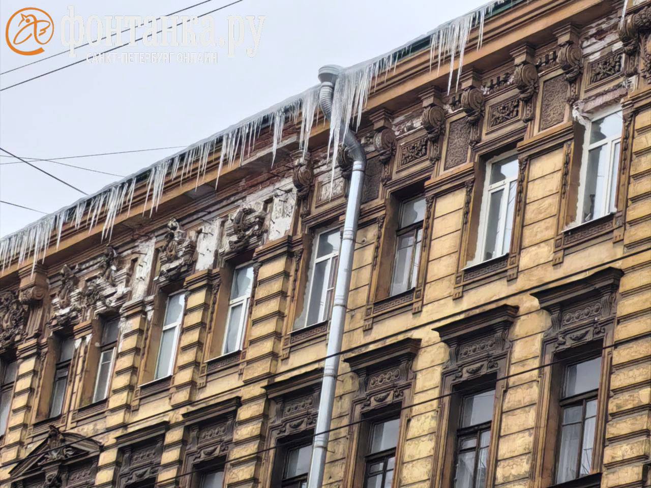 Под домом на Загородном проспекте, 9 ходите аккуратно. Большие сосули. Капают. Не огорожено.