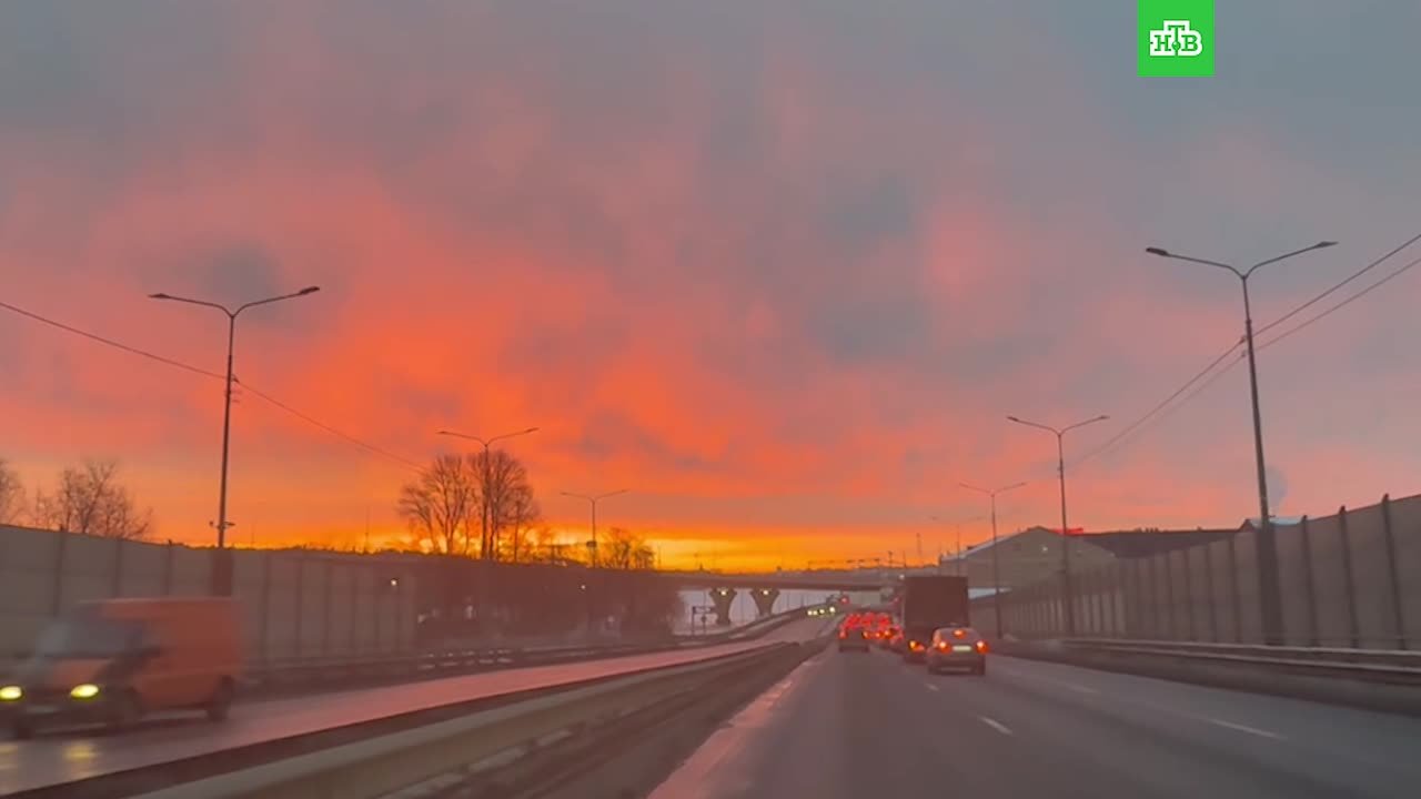 Сегодня утром Петербург разукрасил огненный рассвет.