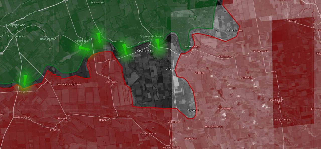 «На Днепропетровском направлении ВС РФ продолжают наступать на южном фланге, продвигаясь в окрестностях Гуляйполя, что вынуждает ВСУ перебрасывать на этот участок дополнительные резервы из числа привлечённых к наступлению на севере частей».