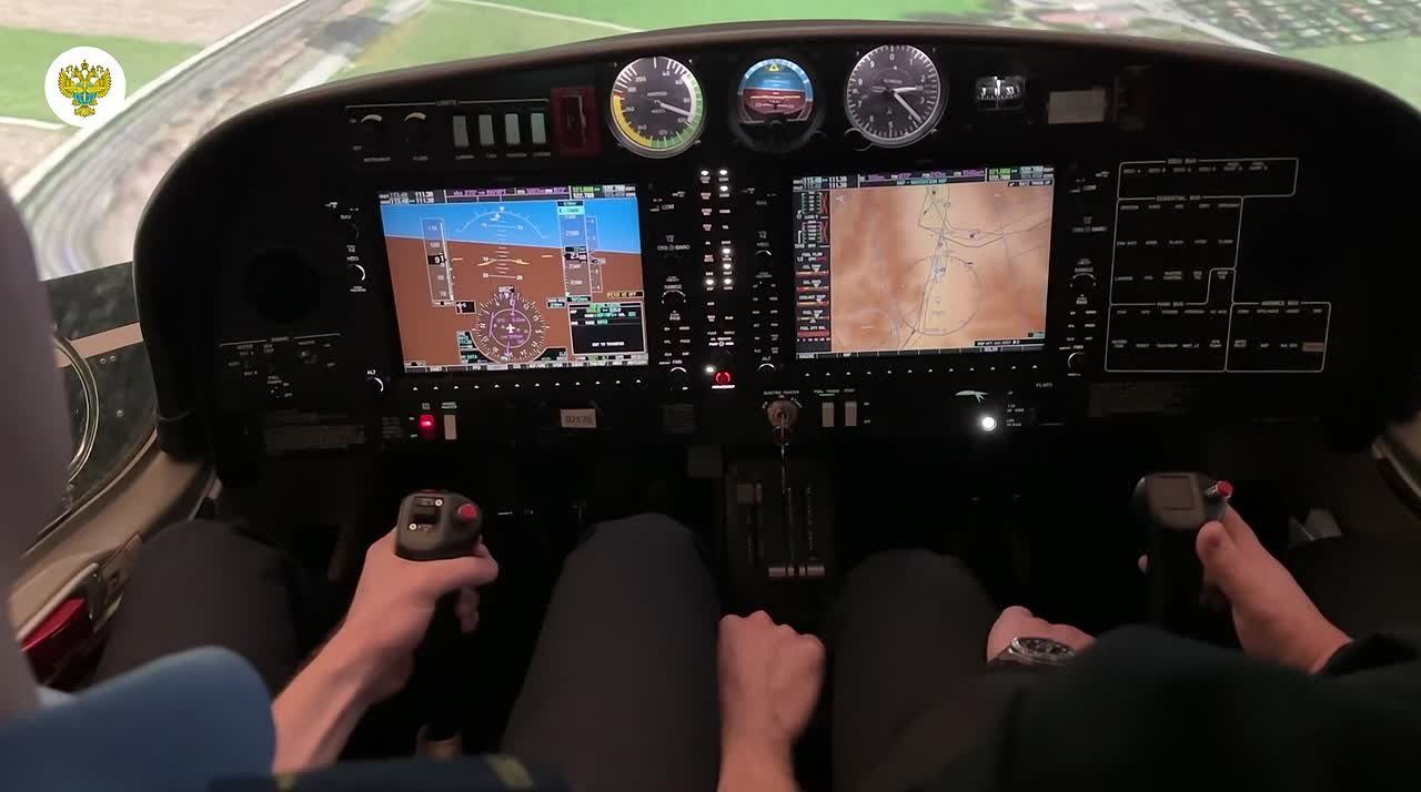 В качестве второго пилота вместе с одним из студентов он полетал на учебном самолете DA40 NG.
