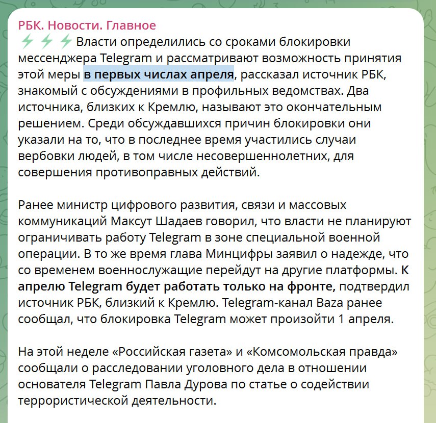 Ну что тут сказать. На всякий случай зарезервируйте канал связи с нами в МАХ.