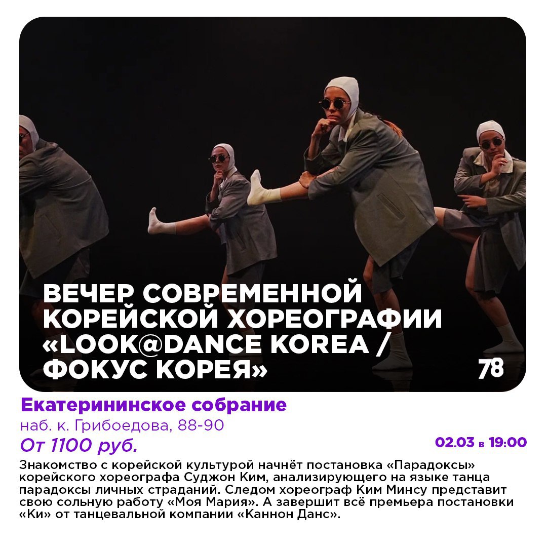 Весна также — время обновления, а потому советуем культурно освежиться к её приходу, послушав современное прочтение балета Чайковского от «Симфозверей» и познакомившись с прелестями корейской хореографии на «ФОКУС КОРЕЯ».