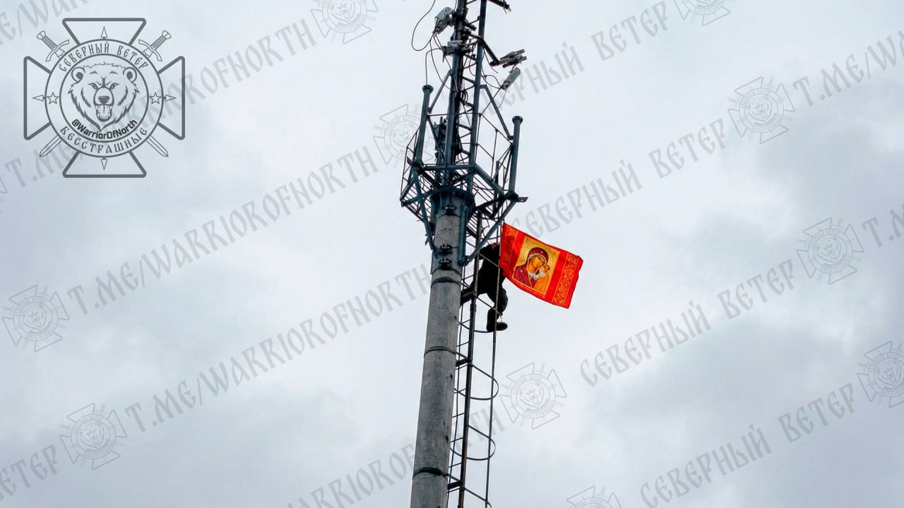 Вражеский оператор беспилотника, не залетая в Чугуновку, зацепил флаг за вышку в приграничной Вериговки (уже территория Белгородской области).