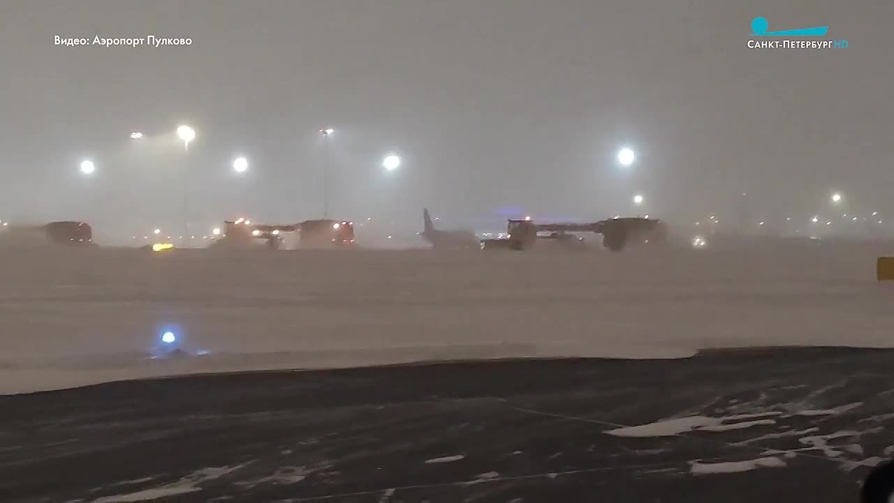 Пулково продолжает принимать и отправлять рейсы, несмотря на снегопад и боковой ветер.