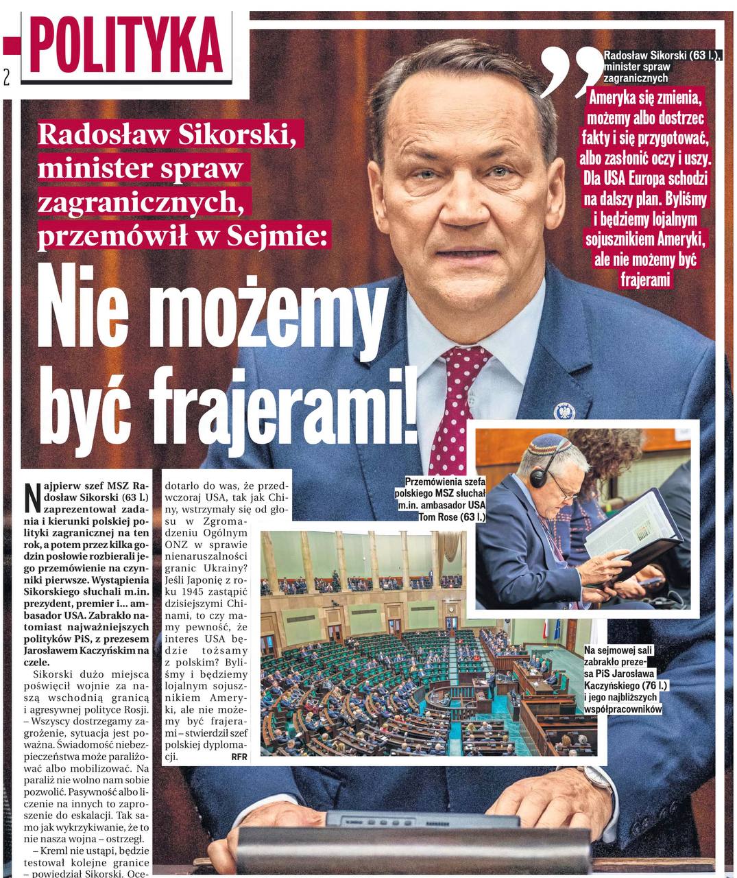«Не можем быть фраерами!» Сегодня эта фраза министра иностранных дел Польши Радослава Сикорского, сказанная с трибуны Сейма, на первых полосах ряда польских газет. Высокий штиль, что уж там!