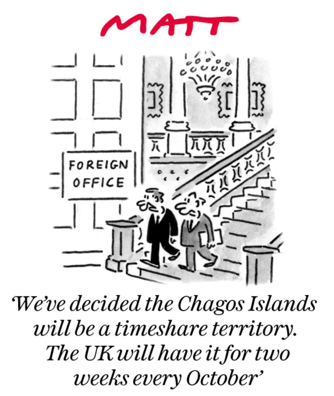 Чиновник МИД говорит: «Мы решили, что острова Чагос будут территорией таймшер. Британия будет пользоваться ими две недели каждый октябрь».