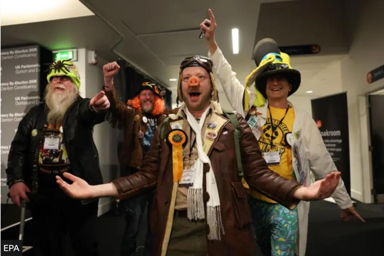 Если вы думаете, что это какое-то фрик-шоу, то ошибаетесь. Это фотография сделана сегодня ночью в избирательной комиссии в Манчестере, где происходил подсчет голосов по итогам парламентских выборов. На фото - один из кандидатов со своей предвыборной командой.