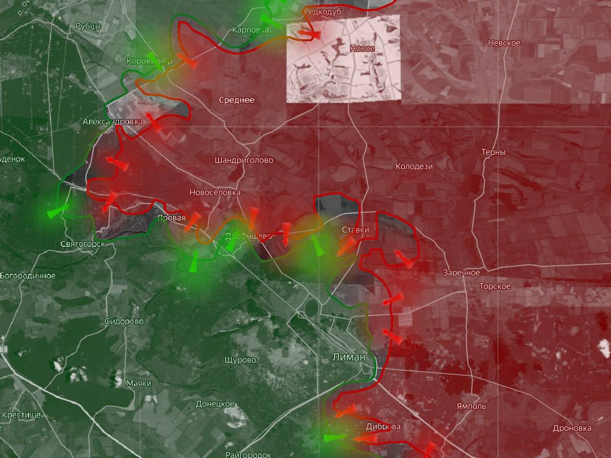 «На Лиманском направлении российские войска водрузили флаг в центре Дробышево. Продолжаются бои за Святогорск и Лиман».