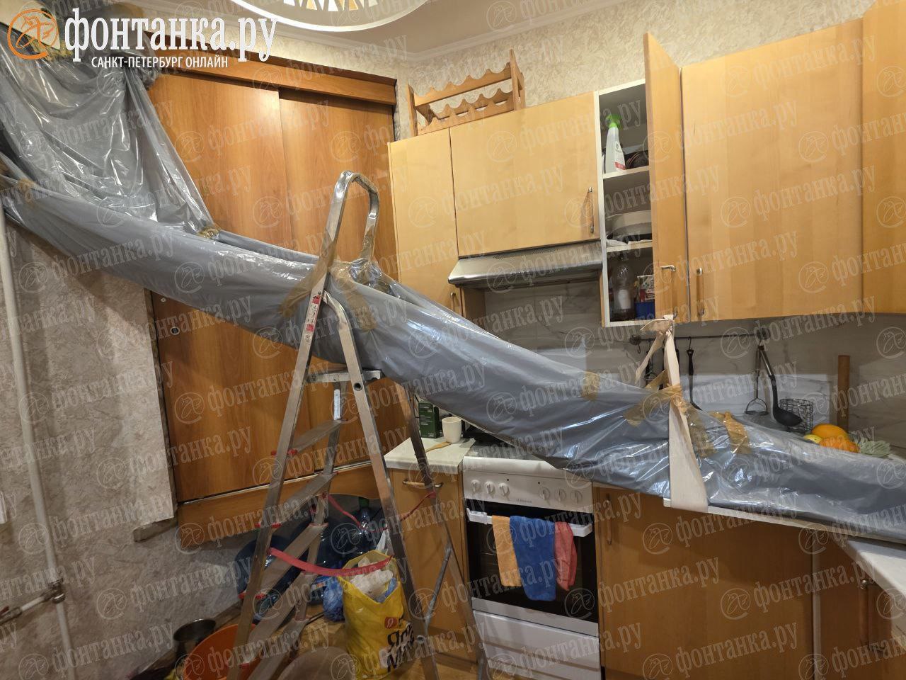 Ее квартира как раз на последнем этаже — мастер советует сливать воду с натяжного потолка.