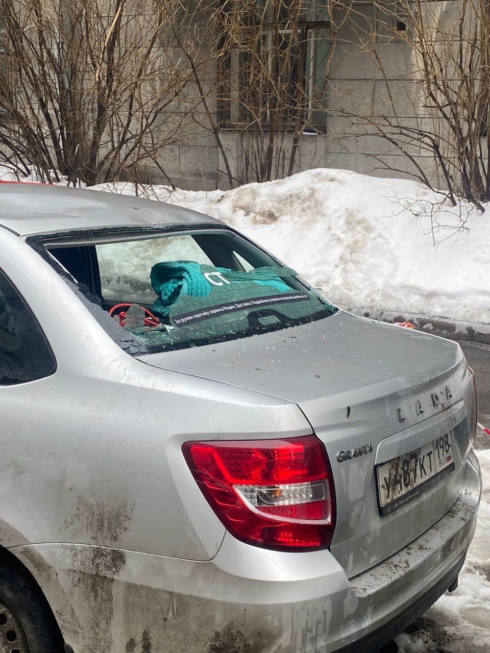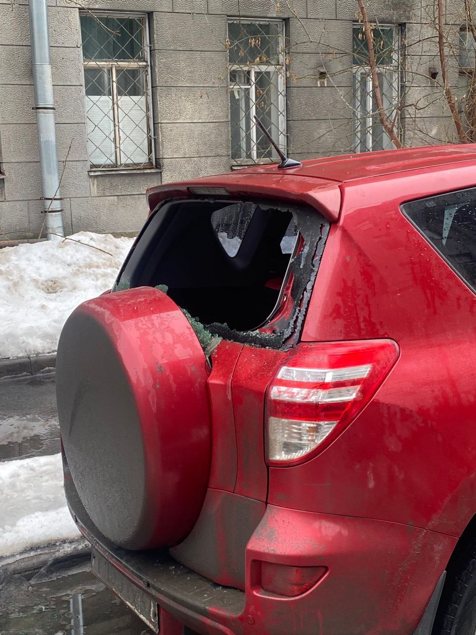 Во дворе на улице Некрасова, д.60 падающий лед повредил уже минимум шесть машин.
