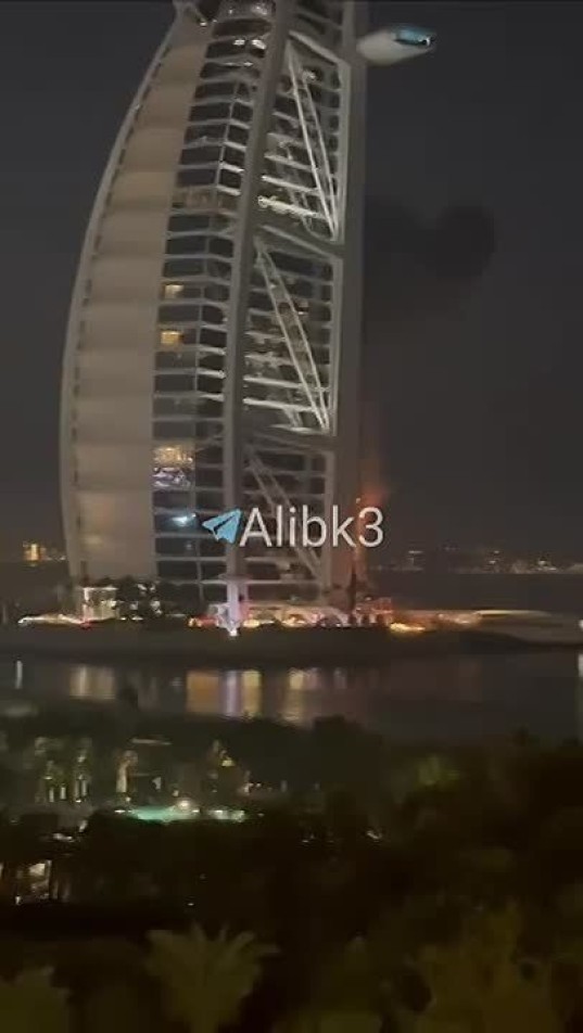 Иранский дрон поразил 5-звездночный отель Бурдж-аль-Араб в Дубае.