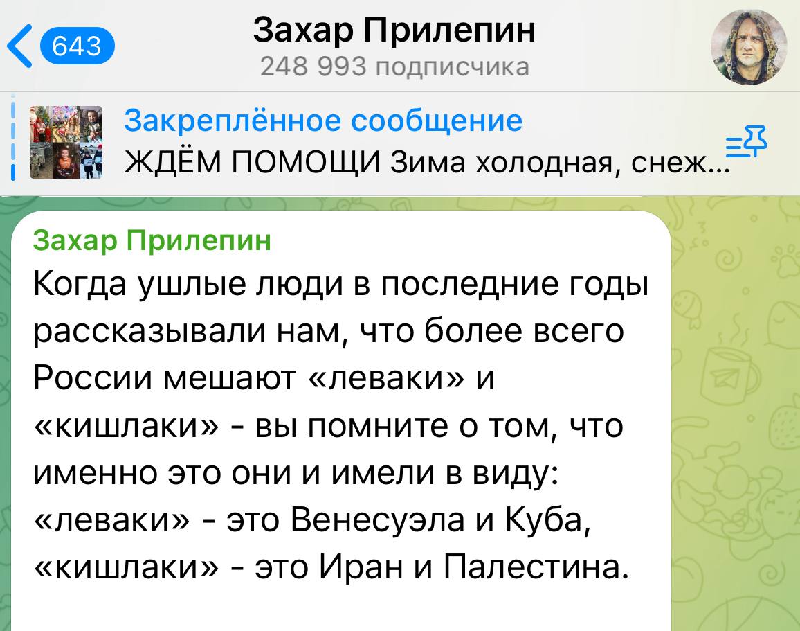 Нет, под «кишлаком» мы имеем ввиду террористов «Крокуса» и весь этносоциальный слой, в котором вызрел этот теракт. А под «леваками» группу внутренних врагов, которые готовы покрывать и защищать «кишлак» несмотря ни на какие «Крокусы».