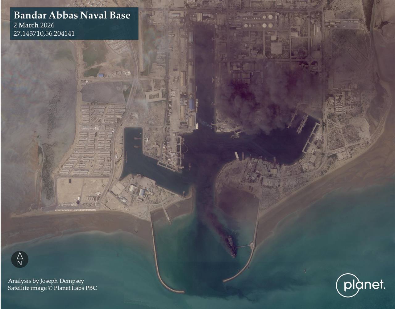 Последствия ударов коалиции Эпштейна по порту Бандар-Аббас.