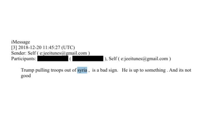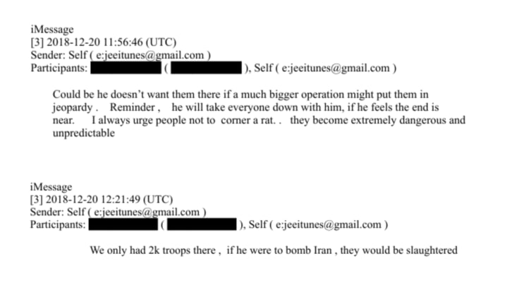 Что еще интересного нарыли?Переписка начинается в контексте неожиданного вывода войск США из Сирии, который, как сообщала в то время CNN, застал врасплох даже высокопоставленных чиновников, отвечающих за национальную безопасность.