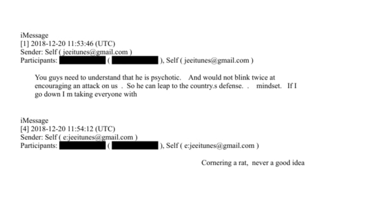 И наконец: «У нас там было всего 2000 солдат, и если бы он начал бомбить Иран, их бы перебили». Неизвестный собеседник ответил: «О! Это было бы безумием!!» Эпштейн написал: «Не с его точки зрения».