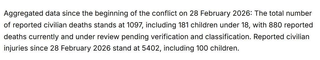 С начала агрессии коалиции Эпштейна против Ирана в Иране погибло 1097 гражданских лиц, среди них 191 ребенок