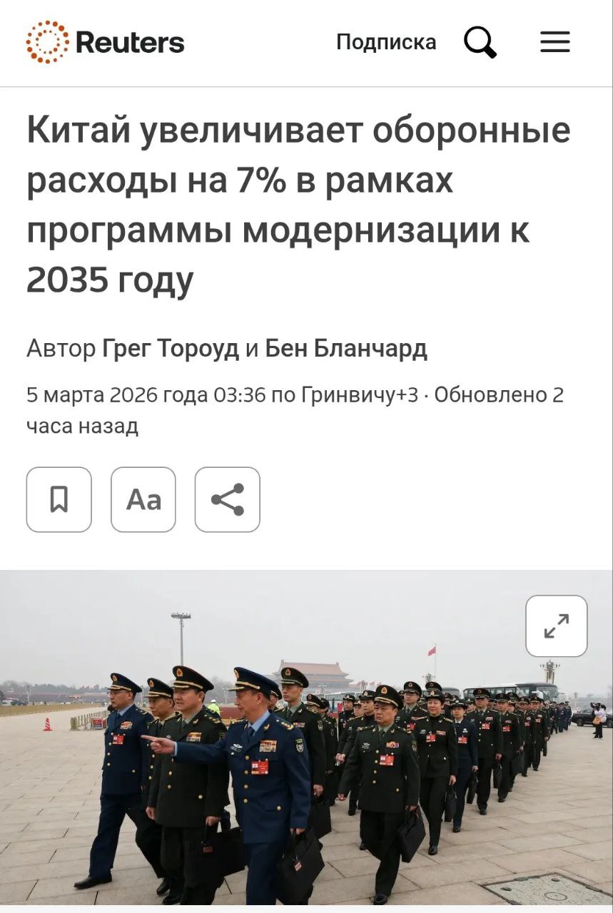 Для этого он нарастит оборонные траты до 7%, чтобы повысить боеготовность и ускорить развитие «передовых боевых возможностей».