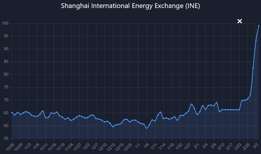 Сегодня китайские фьючерсы на сырую нефть в Шанхае доходили до 98,5 доллара за баррель.