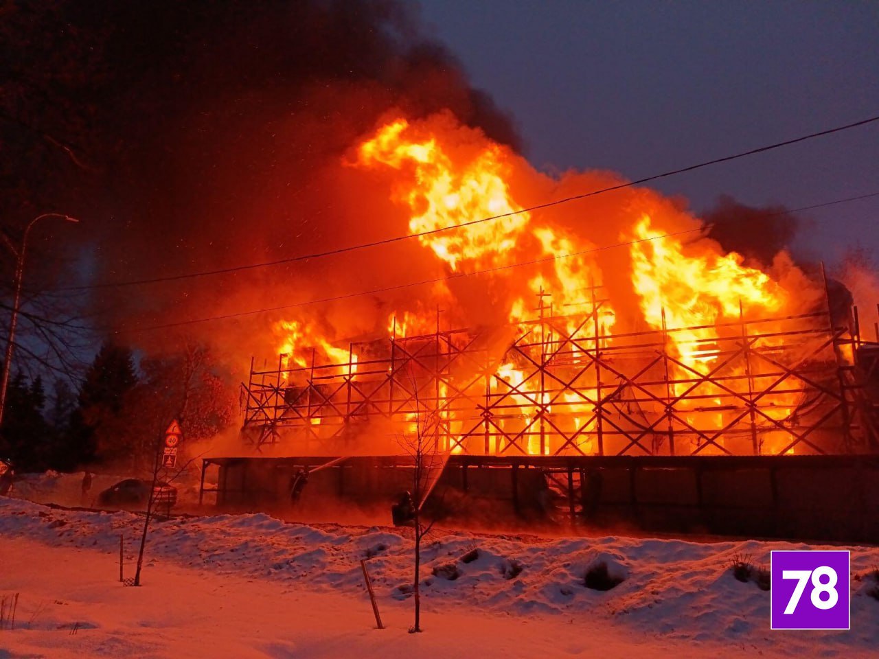 Огонь охватил здание на Заводской линии, которое находится на реконструкции. В ГУ МЧС по Карелии сообщили, что людей в здании нет.