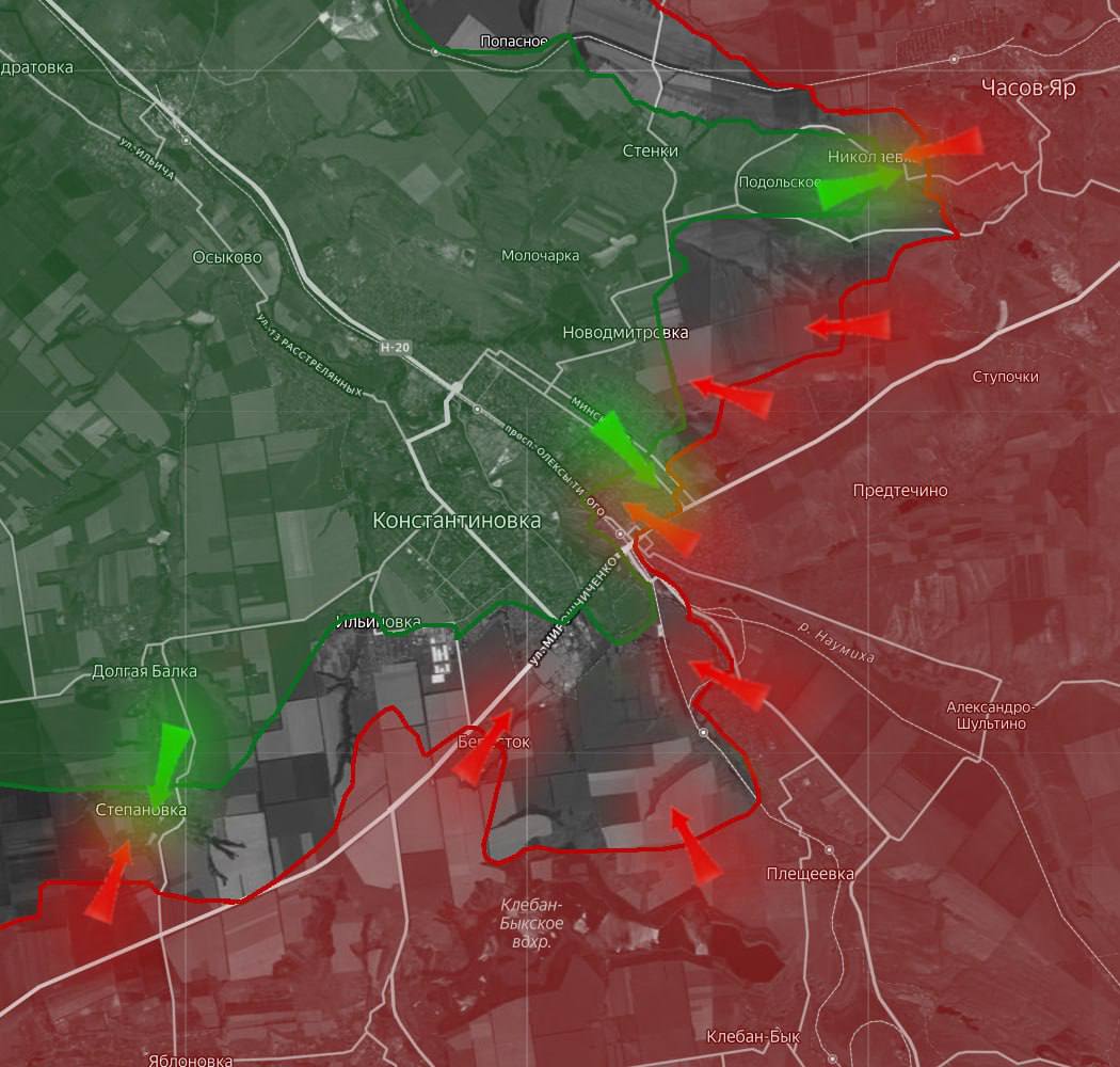 «На Константиновском направлении продолжаются ожесточенные бои в лесопосадках южнее одноименного города.