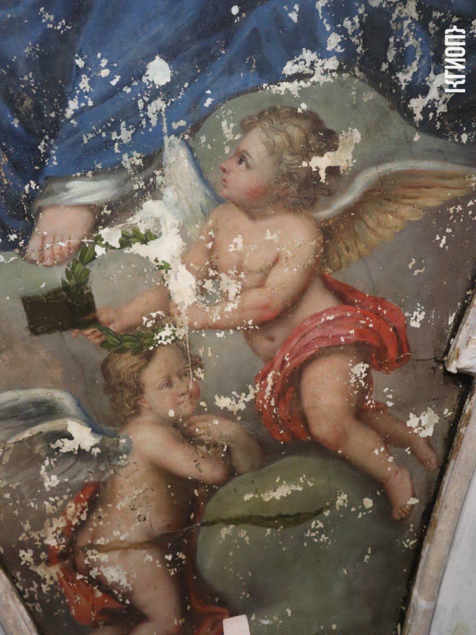 Также в ходе расчисток реставраторы раскрыли фрагменты росписи масляными красками по штукатурке с изображением Святых Великомучениц Екатерины, Дарьи, Анастасии и Аглаи.