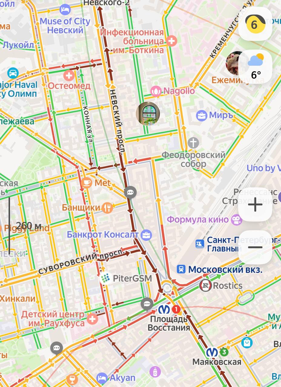 Невский проспект покраснел. По словам водителей, оказавшихся в пробке, на пересечении с Владимирским/Литейным сломался светофор. Выясняем причины.