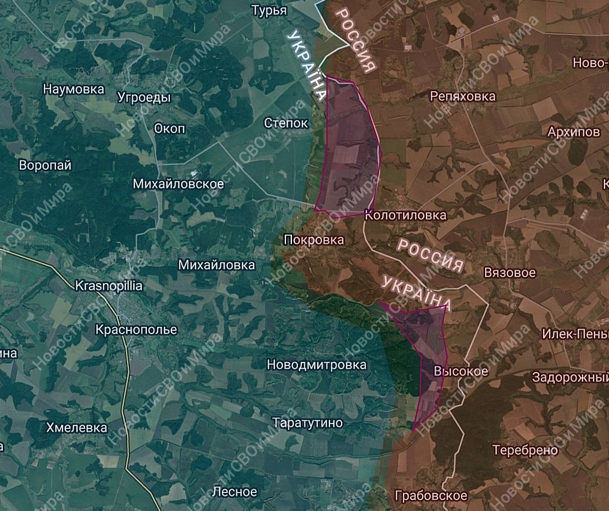 1-2. Сумская область. Расширение буферной зоны. Наши воины продвинулись и заняли позиции в восточной части нп. Степок. Также расширили зону контроля в районе нп. Высокое.
