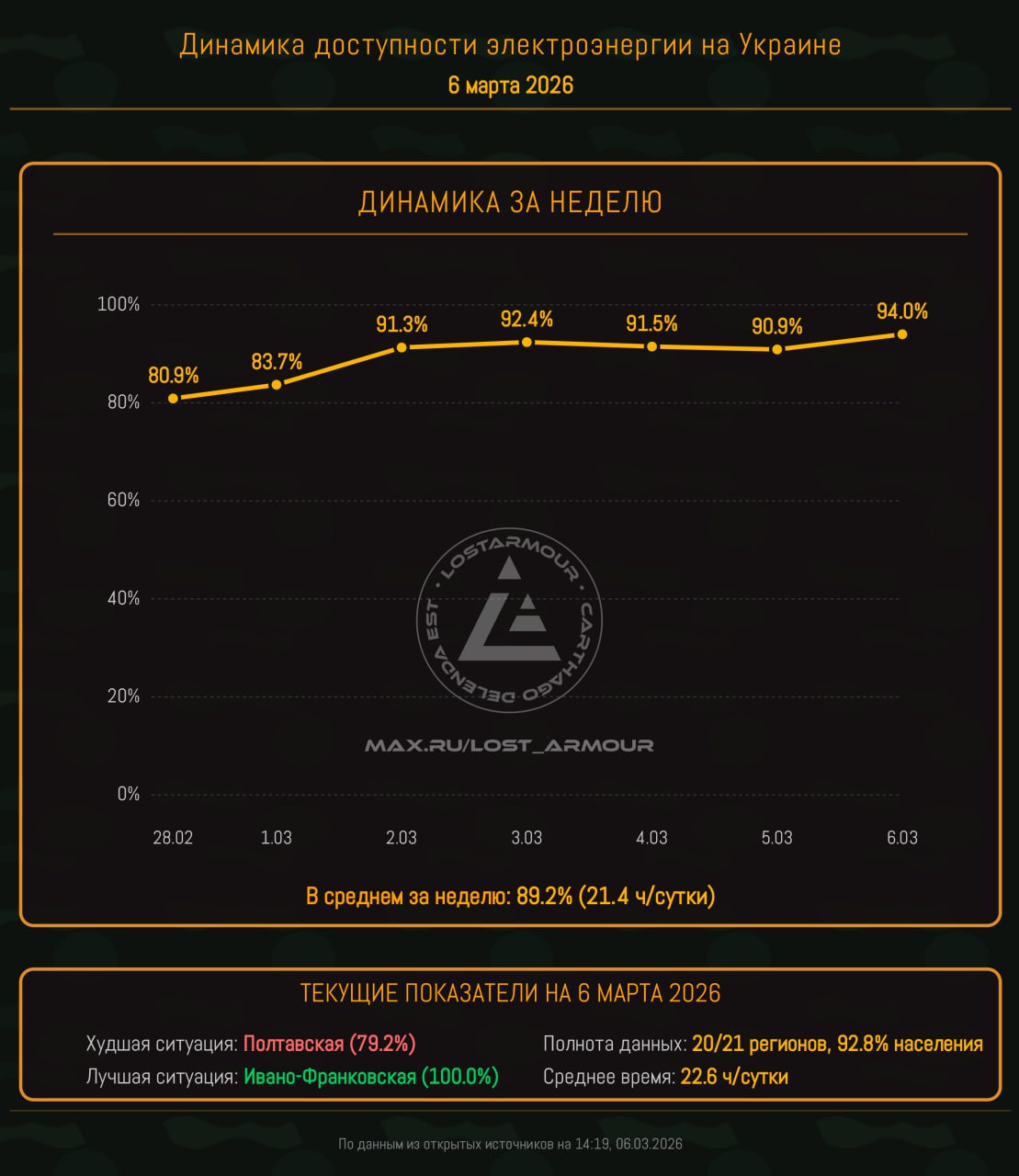Данные по доступности электроэнергии актуализированы на 14:19 06.03.2026