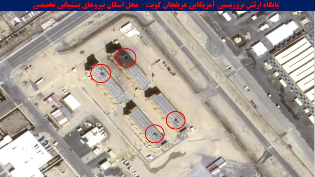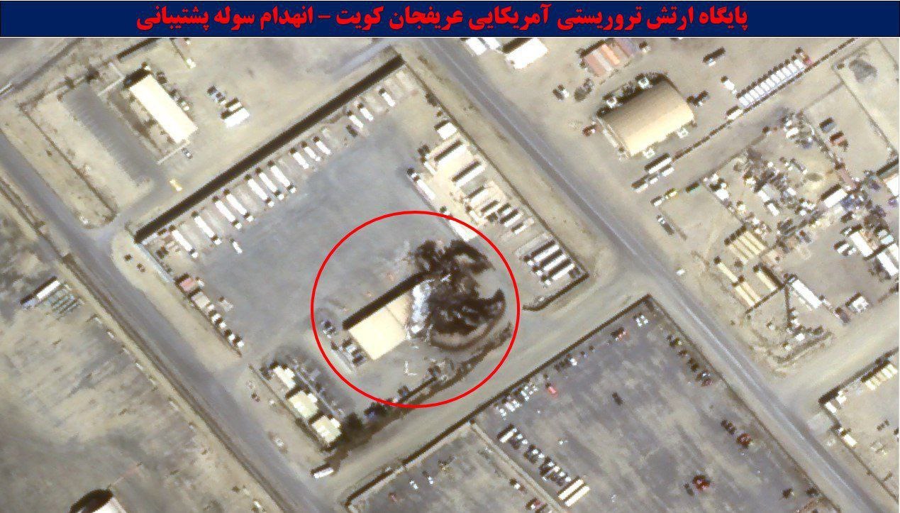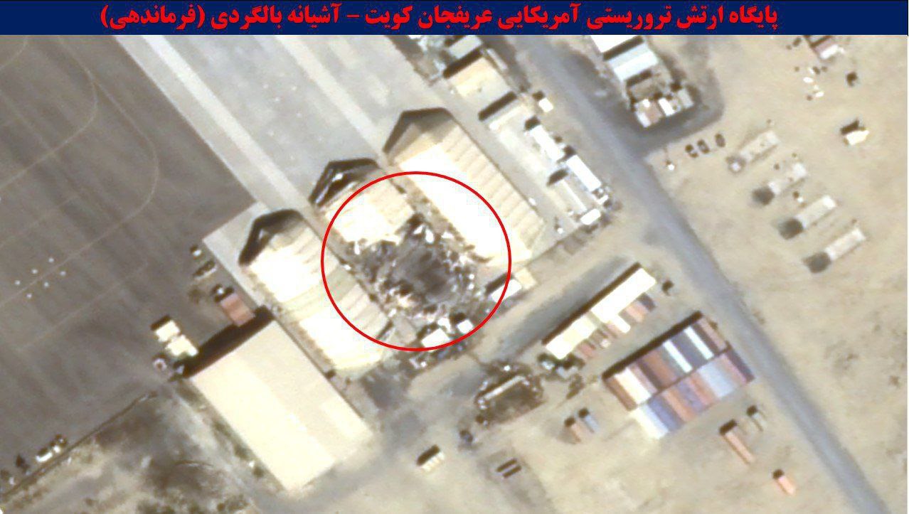 Изображения тяжёлых разрушений на базе американских террористов в Арифджане, Кувейт, после попадания ракет возмездия Ирана.