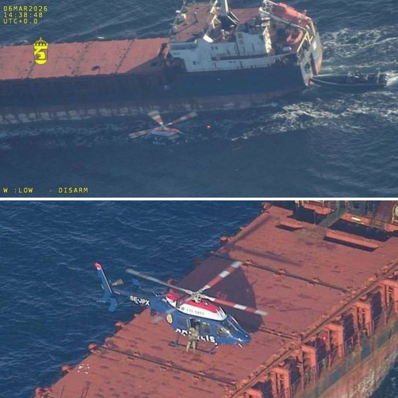 Береговая охрана Швеции публикует кадры захвата сухогруза CAFFA в Балтийском море, который следовал в Санкт-Петербург.