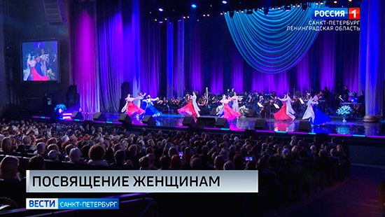 В Большом концертном зале "Октябрьский" в пятницу подготовили музыкальный подарок для петербурженок - там прошёл праздничный вечер "Нашим любимым". Со сцены звучали поздравления не только от артистов.