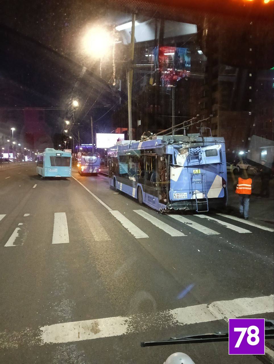 Кадры из троллейбуса, в который врезался автобус на Ленинском проспекте. От столкновения пассажиры подлетели с сидений, те, кто стоял, еле удержались на ногах.