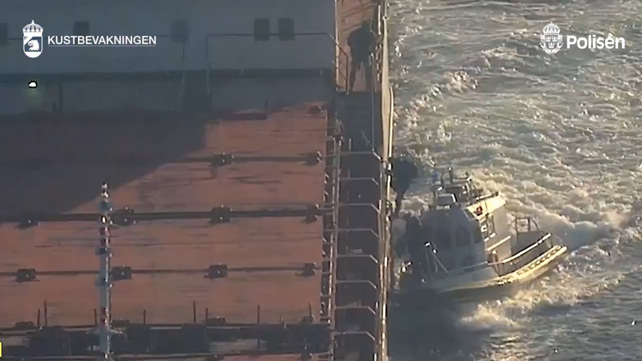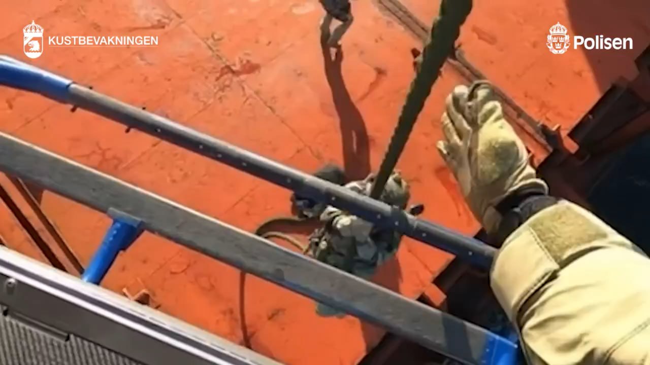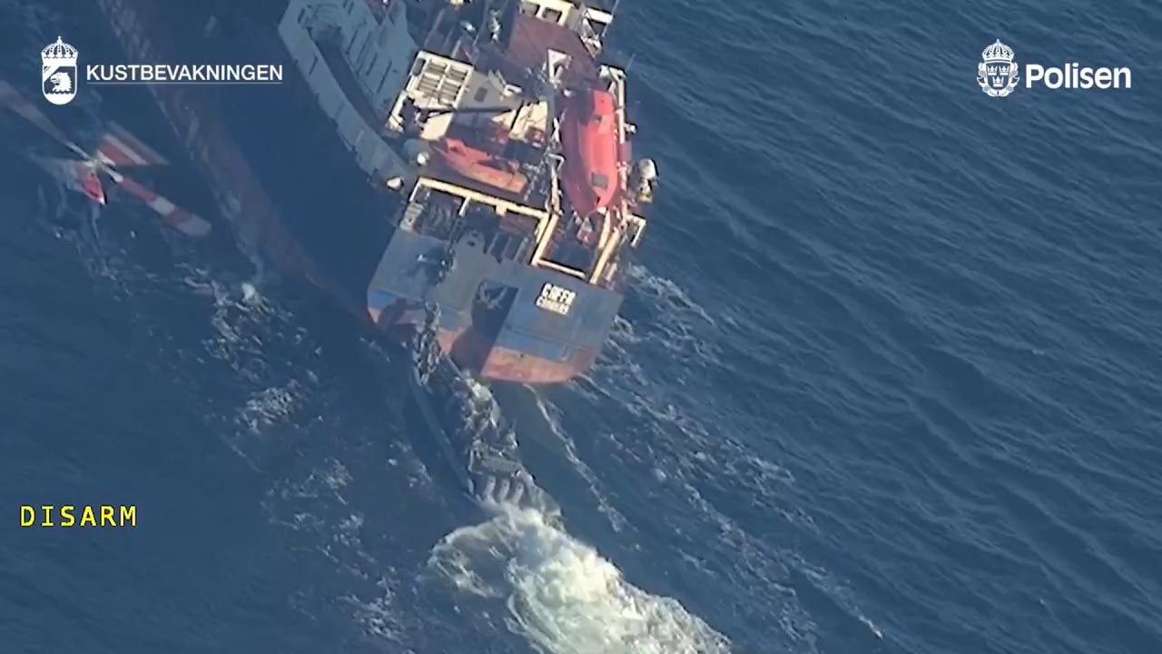 Видео захвата шведскими силовиками сухогруза Caffa, шедший в Санкт-Петербург под флагом Гвинеи.