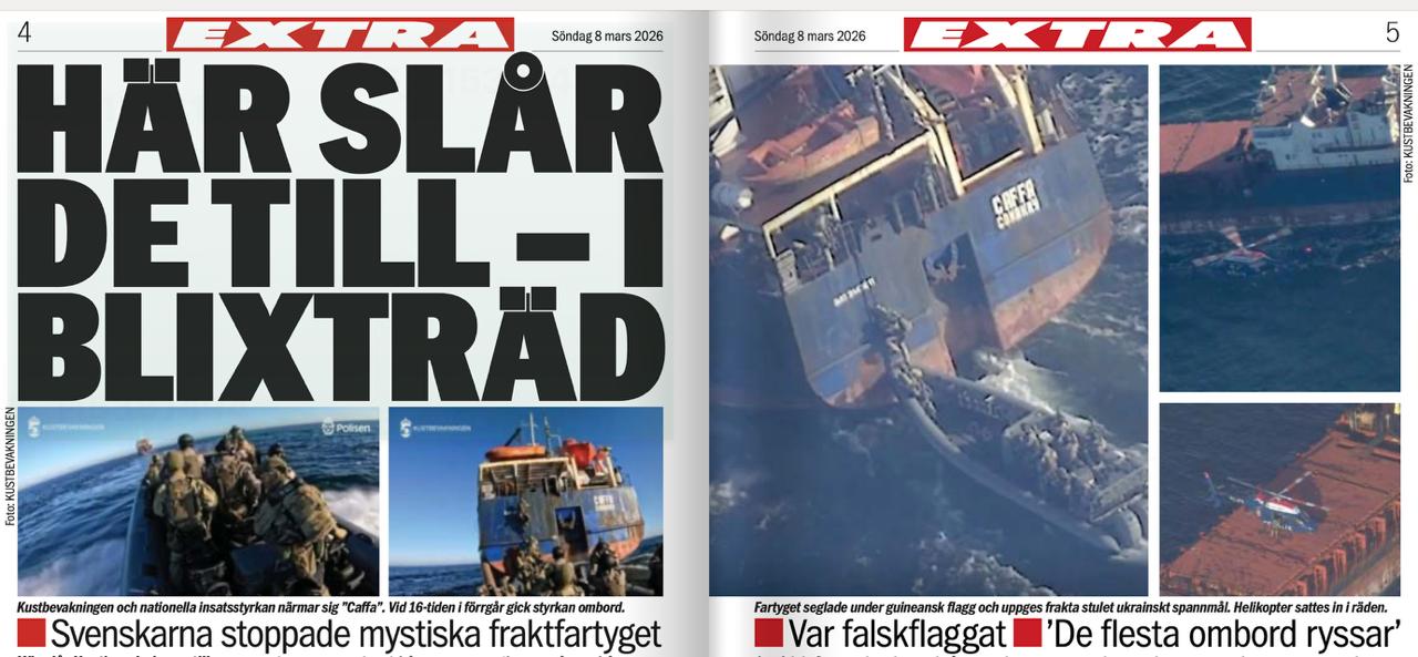 Шведская пресса с восторгом описывает, как береговая охрана этой страны пиратским способом захватила в Балтийском море очередное судно т.н. «российского теневого флота». Речь - о захвате сухогруза Caffa с российским экипажем на борту. Эту дерзкую операцию в Швеции почему-то окрестили «Черный кофе».