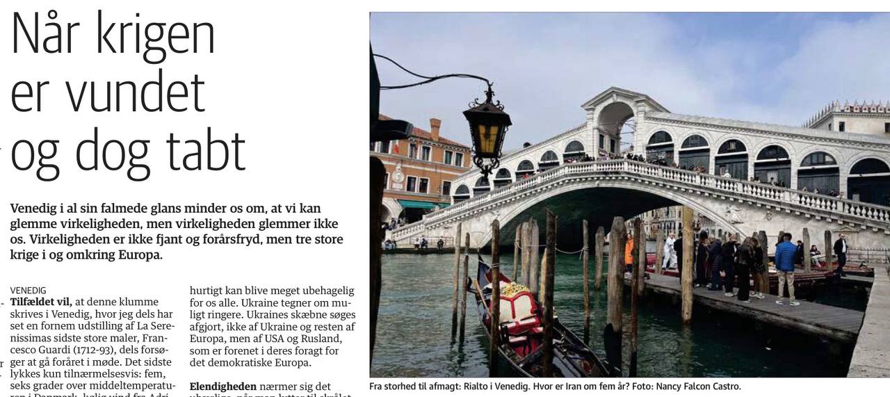 При чем здесь Венеция и мост Риальто?, - спросите вы. А просто Нихольм в начале вскользь упомянул, что весь этот плач по поводу Ирана и Украины он пишет, отдыхая в Венеции. Вот редакторы газеты решили и не заморачиваться с подбором фотографии! И плевать им, есть связь с содержанием статьи или нет.